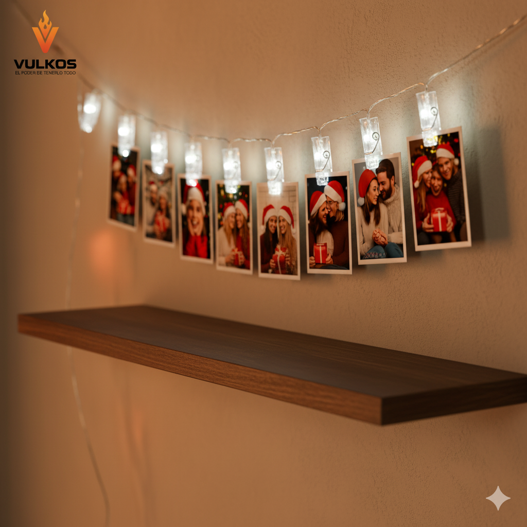Un toque personal: Cuelga tus fotos favoritas, postales, ilustraciones o mensajes inspiradores. Esta guirnalda convierte tus momentos inolvidables en parte de la decoración, haciendo que cada imagen cuente una historia.
